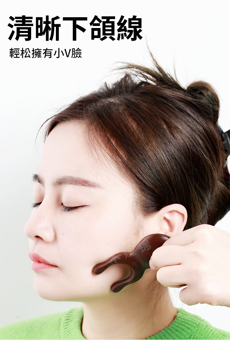 15分鐘前多功能按摩梳 檀木按摩梳子青蛙鼻子按摩器 - 【面部提拉 清晰下頜綫】6入組-NT$1498
