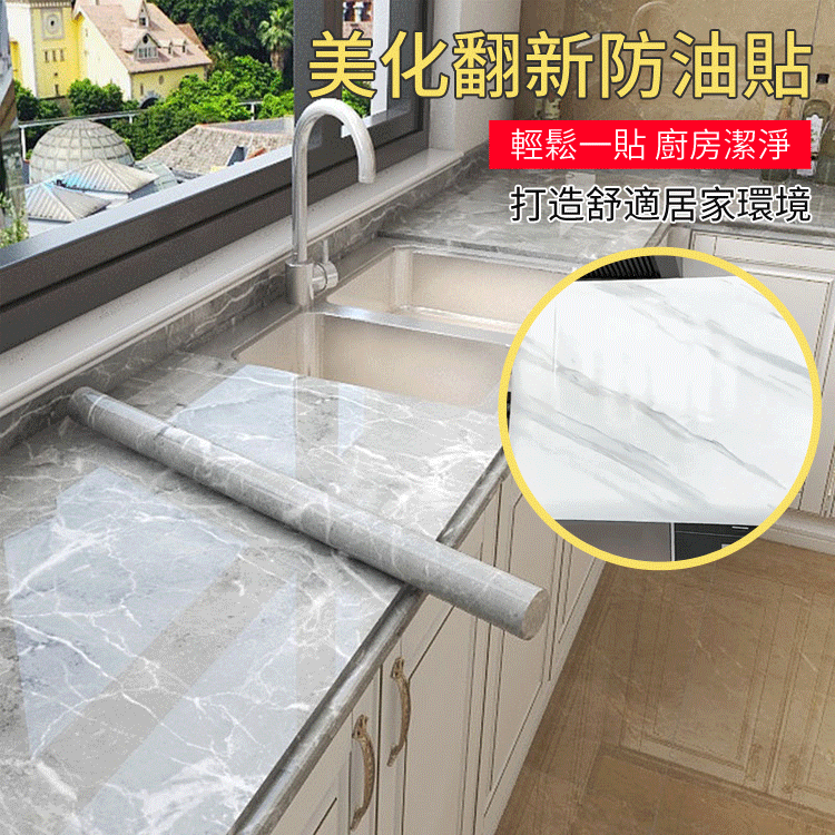 2分鐘前限時搶購 廚房貼紙防水防油大理石家具貼膜自粘牆紙瓷磚灶台桌面櫃子保護膜 - 8卷【1卷僅需149】NT$1199